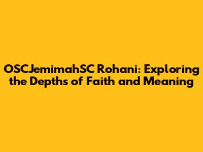 OSCJemimahSC Rohani: A Deep Dive Into Meaning & Impact